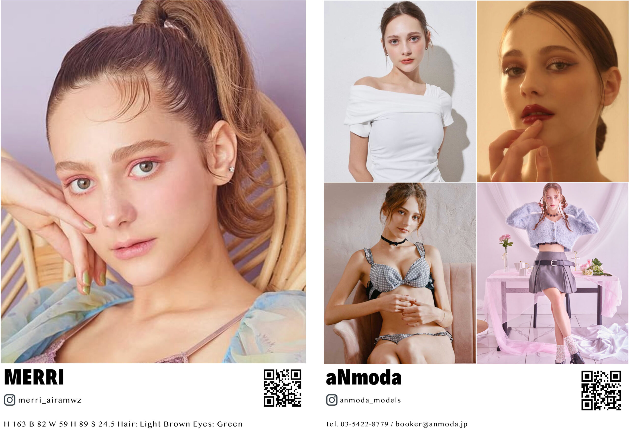 HOME ⁄ WOMEN ⁄ MERRI MERRI Height163 Bust82 Waist59 Hips89 Shoes24.5 HairLight Brown EyesGreen COMPOSITE POLAROID MOVIE BOOKING