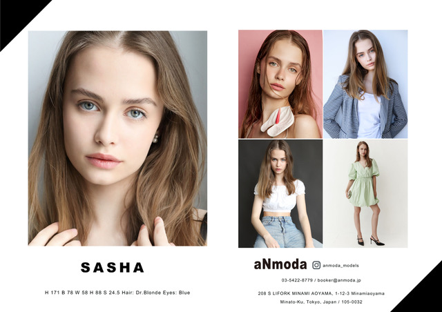 HOME ⁄ WOMEN ⁄ SASHA SASHA coming soon Height171 Bust78 Waist58 Hips88 Shoes24.5 HairDr Blonde EyesBlue COMPOSITE BOOKING