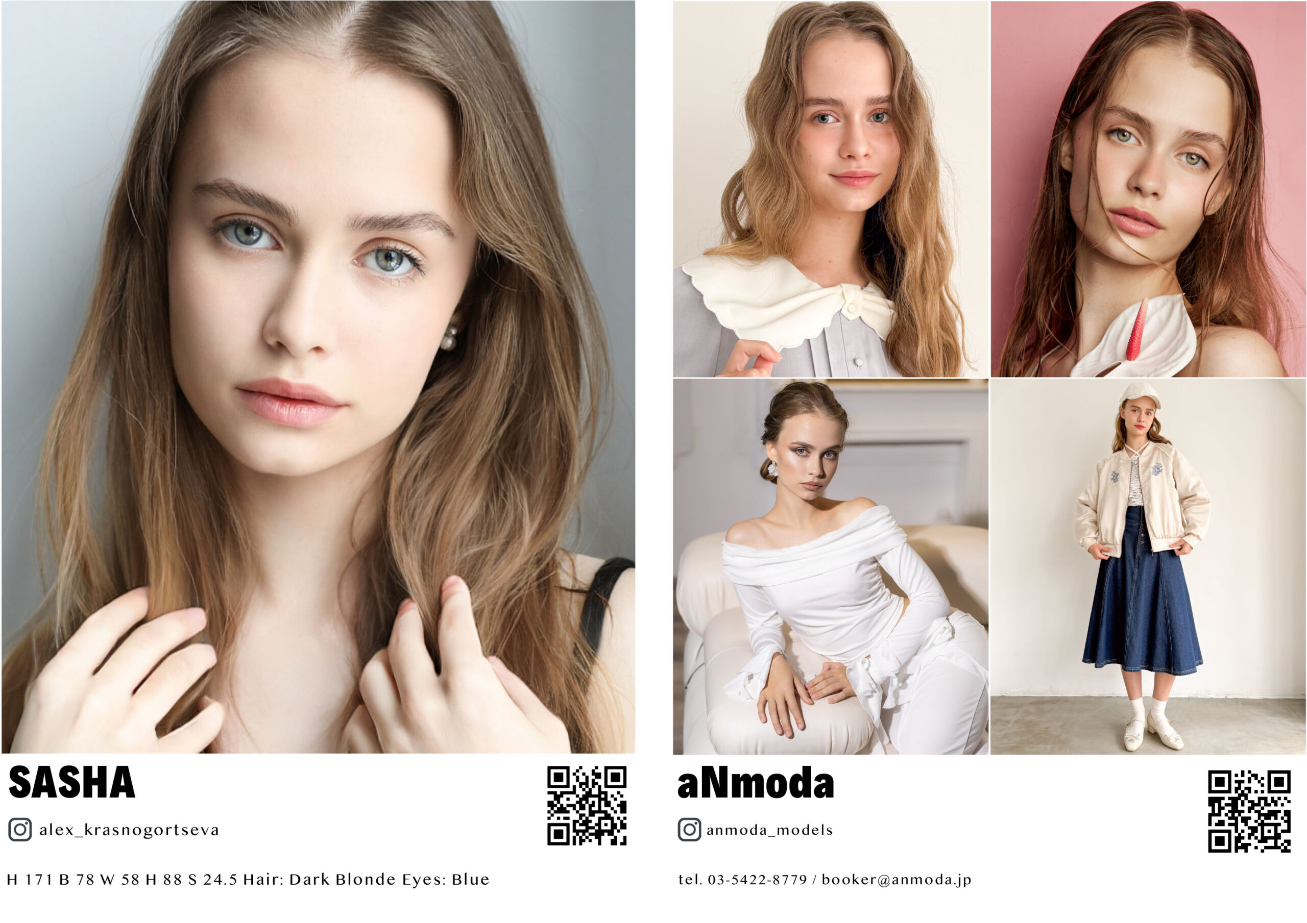 HOME ⁄ WOMEN ⁄ SASHA SASHA Height171 Bust78 Waist58 Hips88 Shoes24.5 HairDr Blonde EyesBlue COMPOSITE BOOKING
